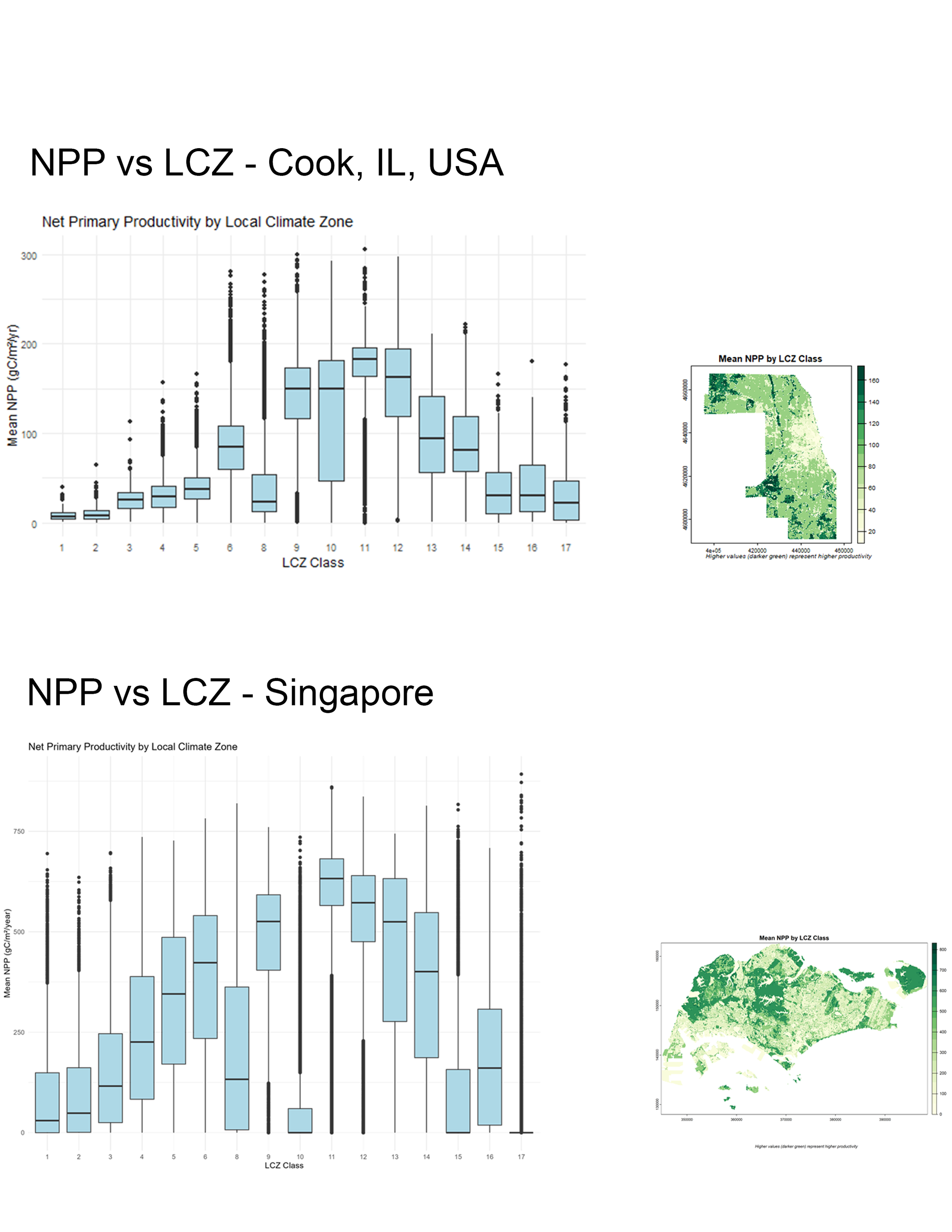 Form, Function, and Equity in the Urban Carbon Cycle: A Comparative Study of Local Climate Zones, Net Primary Production, and Socioeconomic Impacts in Cook County, IL, and Singapore